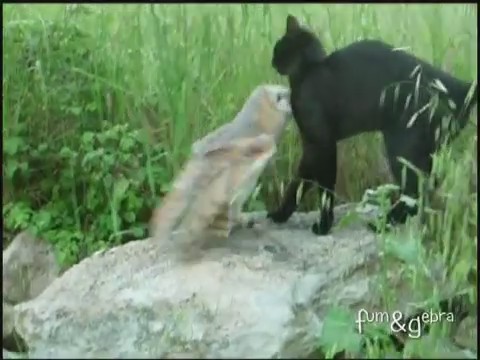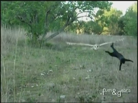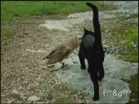 En este tierno vídeo vemos al gato Fum (humo) y el búho Gebra (escarcha) jugando y compartiendo unos momentos lúdicos. Parece mentira que animales tan diferentes y que pueden ser enemigos, se entiendan tan bien cuando se han acostumbrado el uno al otro.