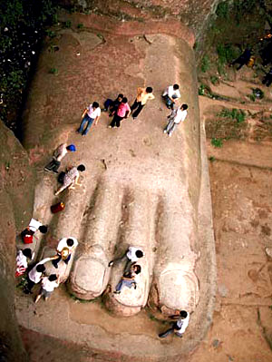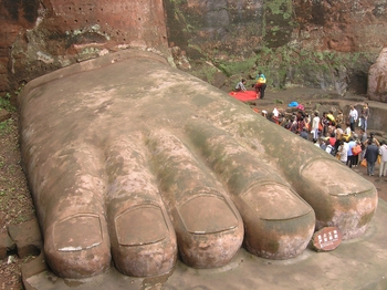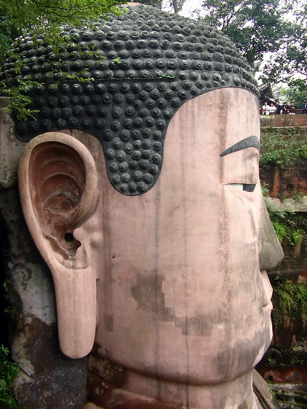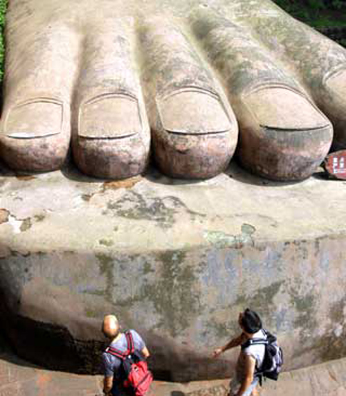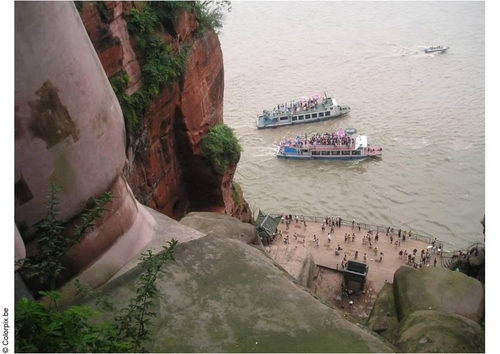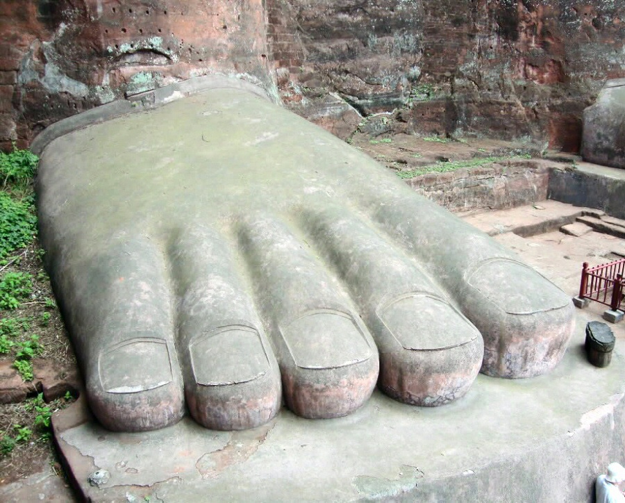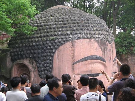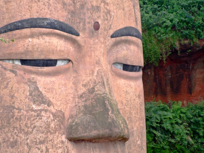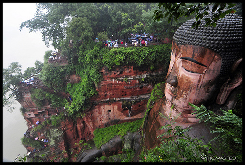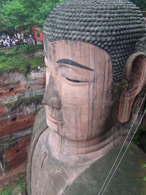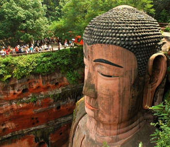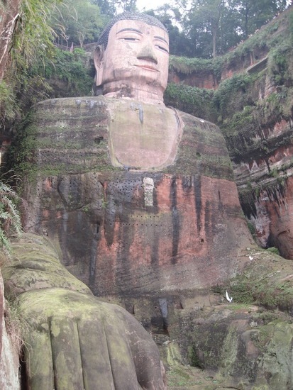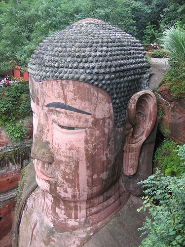 Las vistas desde los pies del Buda son igualmente imponentes, ya que la figura se alza majestuosa sobrecogiendo a cualquier espectador. También podemos montar en un ferry para ver una vista panorámica del Buda desde el río. Existe un dicho en la zona que reza así: «La montaña revela al Buda y el Buda esconde la montaña». Esto se corresponde con la vista que podemos ver cuando navegamos por el rio, con la imagen de la montaña y el Buda en su corazón durmiendo apaciblemente.