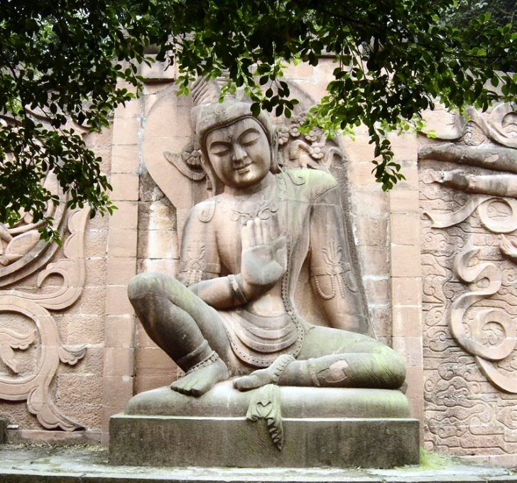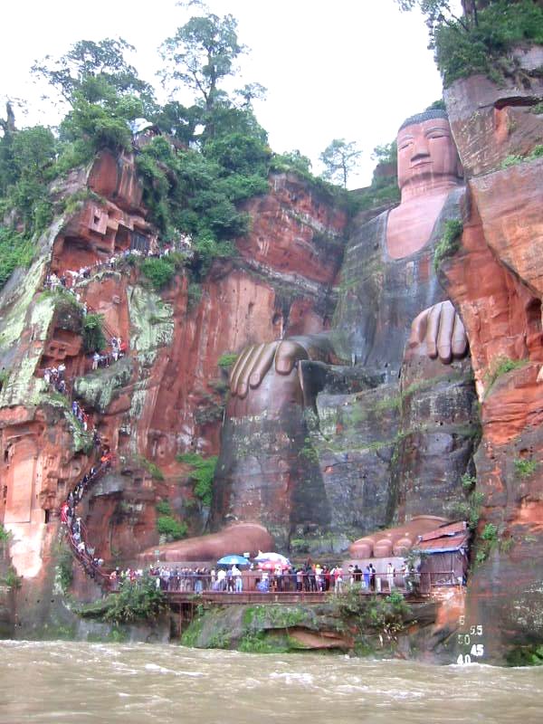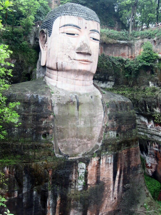 Esta colosal representación de Maitreya (Mile Foi), el Buda mesiánico de la era futura, está tallada en piedra y tiene 71 metros de altura, por lo que es el Buda de piedra más alto y la estatua premoderna de mayor altura del mundo. Fue cincelada entre los años 713 y 803 (dinastía Tang 618–907d.C.) en un precipicio del monte Lingyun cercano a la ciudad de Leshan, donde confluyen los ríos Mín Jiāng (Minjiang), Dadu y Qingyi, al sur de la provincia de Sichuan.