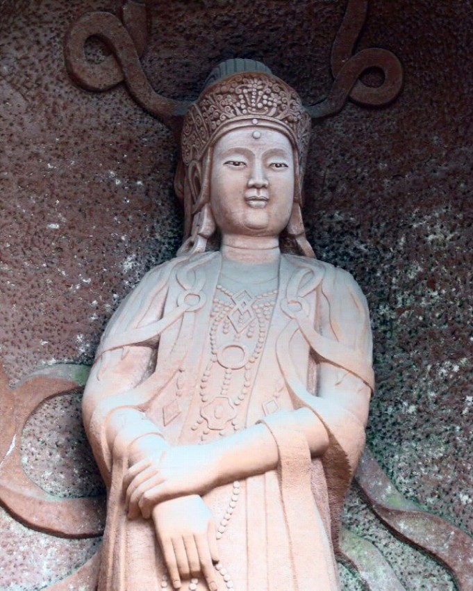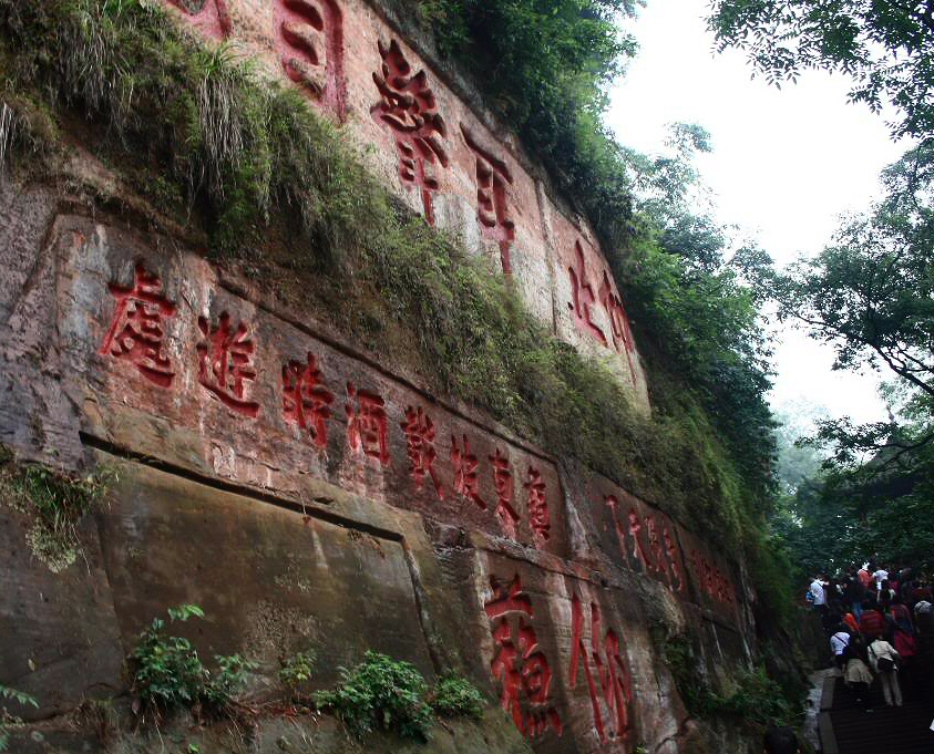 Esculturas y grabados que hay en las paredes laterales del Gran Buda de Leshan.