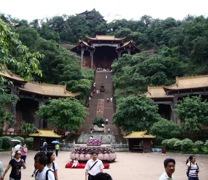 Si quieres admirar de cerca esta estatua, puedes recorrer una impresionante plataforma de madera situada a un lado del acantilado. A la derecha del Buda, existe un corredor escarpado de 250 escalones, que serpentea nueve veces en forma de zigzag. Este es el famoso pasillo de las nueve vueltas, no apto para los que sufren de vértigo.