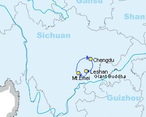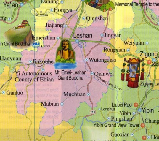 Mapas para situar el Gran Buda de Leshan y Sichuan en China.