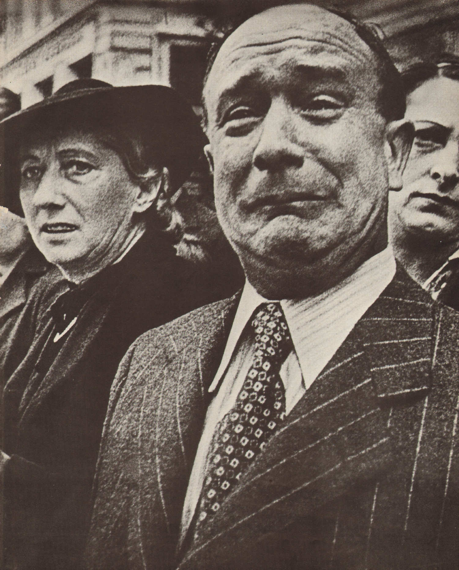 Es una de las fotografías más memorables de la Segunda Guerra Mundial. En las imágenes aparece un francés de mediana edad llorando, que viste traje y sobrevivió a la Primera Guerra Mundial. El hombre llora mientras los regimientos embarcan las banderas de las tropas vencidas para evitar que sean capturadas. Los soldados franceses parten de Tolón (Marsella) hacia África, seguramente para combatir al día siguiente.
