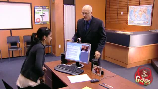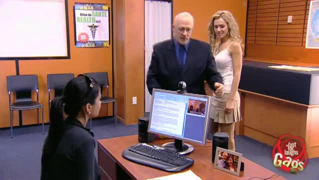 Buenísima broma con cámara oculta de Just For Laughs en la que hacen pasar un mal rato a unos novatos que empiezan a trabajar en una oficina. Su puesto es el de secretarios, que pueden ver por una webcam el despacho del jefe, el cual se dedica a engañar a su mujer con una pilingui. Por orden del jefe, deben mentir si llegara a presentarse la mujer por la oficina, diciéndole que no está en el despacho. Muy bueno cuando viene la mujer, y las víctimas son cómplices del engaño del jefe ocultando que su marido está pegándose el lote con otra a pocos metros. Lo que hace la gente por conservar los puestos de empleo…