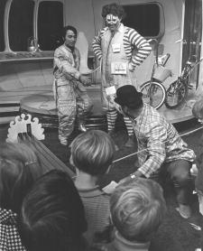 Aquí tenéis al tétrico Ronald McDonald en el primer spot que se realizó para televisión de esta franquicia tan polémica. Este anuncio fue creado e interpretado por Willard Scott, que posteriormente se convirtió en el hombre del tiempo para el programa Today Show de la NBC. Willard desarrolló el personaje del payaso Bozo (primera versión de Ronald McDonald) para «Gee Gee Distributing», el grupo de los empresarios John Gibson y Oscar Goldstein, los cuales estaban a cargo de la franquicia de autorestaurantes McDonald’s en el estado de Washington. Más tarde contrataron a otro actor para los anuncios nacionales.