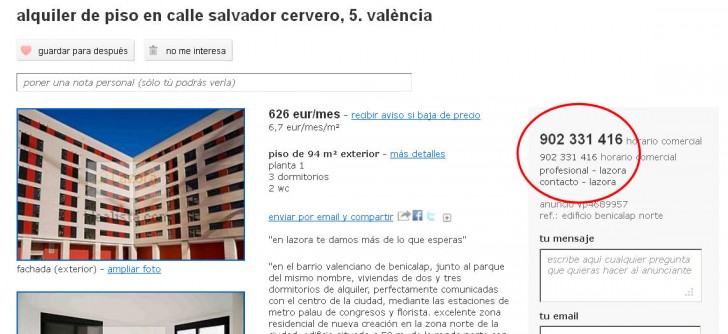 En el caso de los alojamientos para vacaciones, en los que se están dando cada vez más frecuentemente este tipo de estafas, sería suficiente con que los usuarios buscaran propiedades sólo en páginas web que no admiten anuncios gratuitos ni anónimos. Entiendo que muchos propietarios prefieran publicar anuncios gratuitos, evitar facilitar sus datos en los mismos o, incluso, falsearlos en un cuestionable intento de salvaguardar supuestamente su anonimato, considerando internet una especie de territorio de nadie donde todo es válido, pero a un usuario que desea alquilar un alojamiento para vacaciones con un mínimo de garantías le tiene más a cuenta localizar propiedades en páginas web en las que los propietarios estén debidamente identificados y abonen la publicidad de sus anuncios. Difícilmente un estafador pagará por anunciarse a sabiendas de que deberá realizar una transferencia bancaria y facilitar sus datos para serle facturada la publicidad contratada. Lo de «Publique aquí su anuncio gratis» estará muy bien para los propietarios, pero es una puerta abierta a todo tipo de fraudes para quienes buscan alojamiento, que son los que deben aprender a diferenciar los cientos de directorios de anuncios gratuitos de las páginas web de contenido especializado, que incluso avisan de que sólo admiten anuncios de pago. Otra solución, por supuesto, es alquilar únicamente a agencias. Sale algo más caro, pero te evitas este tipo de problemas. Tal y como veo el percal, sabiendo cómo piensa una parte importante de la gente, leyendo comentarios en internet, etc., no me fio de la procedencia de ningún anuncio gratuito.
