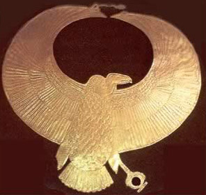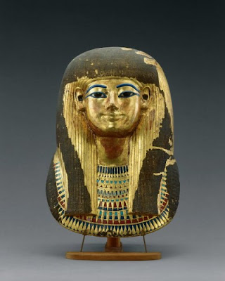 La máscara de oro de Tjuju, la madre de la reina Tiy y la abuela de la momia de la tumba KV55, ambas descubiertas por Theodore Davis.