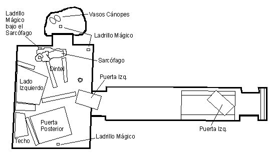 El nicho, donde se puede ver uno de los vasos canopos, tal y como fueron descubiertos en 1907.