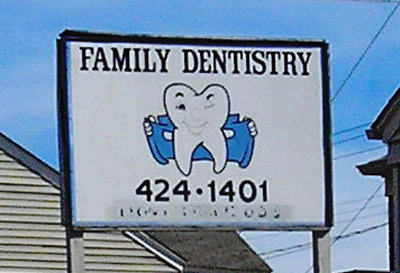 Para anunciar un dentista familiar, lo mejor es mostrar un diente exhibicionista guiñándonos el ojo.
