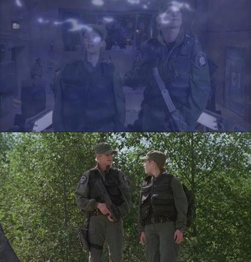 Stargate SG-1: Las actrices cambian de posición de repente.