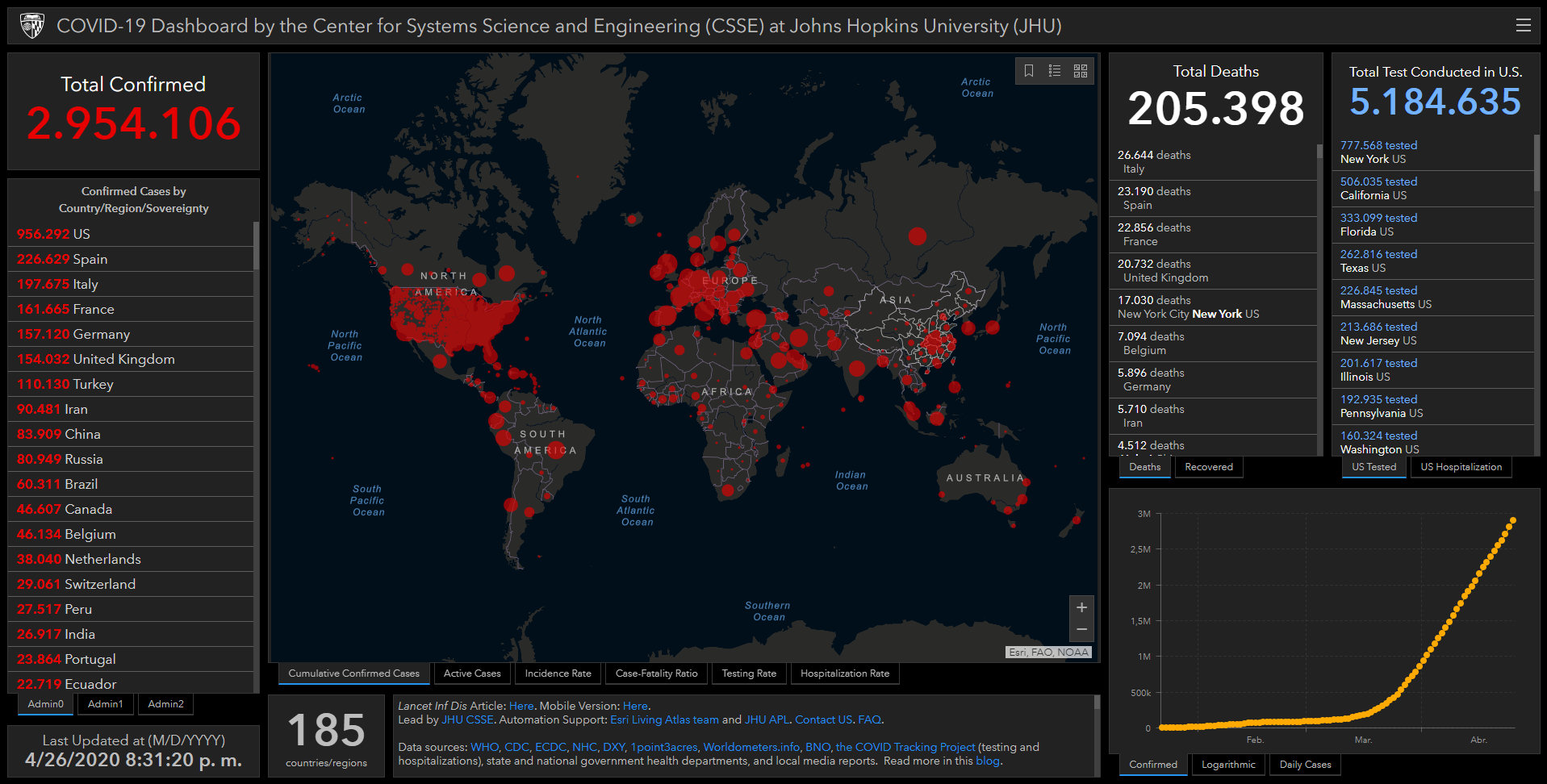 2.954.106 personas contagiadas en todo el mundo.