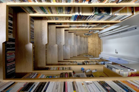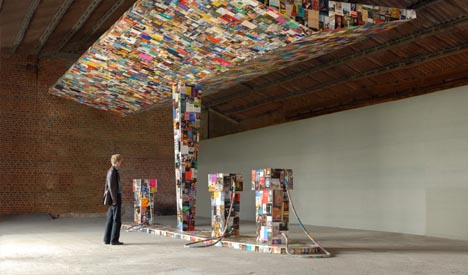 Estas bibliotecas en bucle pertenecen a Job Koelewijn, un artista que gusta de crear composiciones que invitan a la gente a tocar o interactuar con ellas. Ha trabajado con fotografía, arquitectura o incluso películas. Su amor por la lectura provoca el uso de elementos de los libros para sus obras.