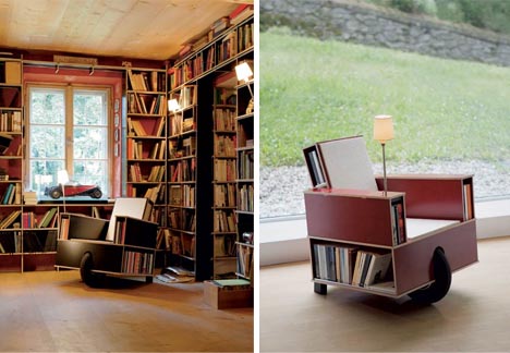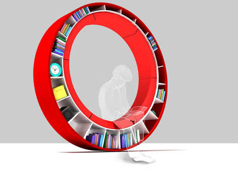 Estanterías circulares, en forma de rueda. ¿Se podrán transportar? El diseñador también ha pensado en todo y también nos permite añadir una base para darle estabilidad a la estantería.