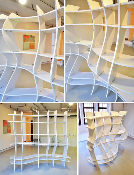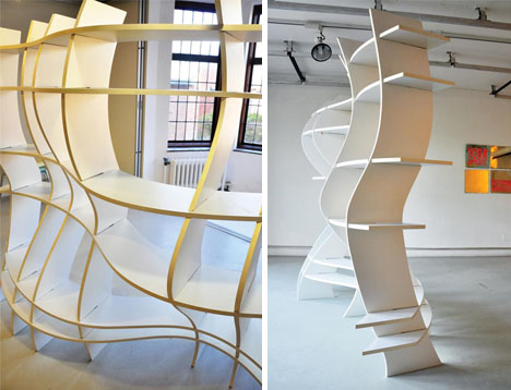 Estanterías de formas redondeadas pero irregulares, en forma de espiral, etc.