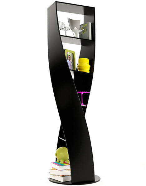 Normalmente las estanterías están creadas para ser dispuestas cerca de una pared, por lo que heredan una rígida geometría. Este diseño rompe los estereotipos al tener todos sus lados irregulares.