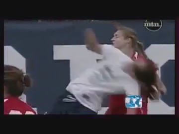 Vamos, lo de esta japuta es de delito, no sé cómo de dejan jugar al fútbol de esta manera. Mecos, estirones de pelo, puñetazos, luxaciones de espalda, patadas en el estómago y la boca… ¡no se priva de nada! No sabía cómo clasificar este vídeo, si en la categoría de humor, o la de vídeos sorprendentes, decantándome por lo último debido a la gravedad del asunto, por mucho que esa edición de sonidos añadidos de tundas me dé un poco de risa.