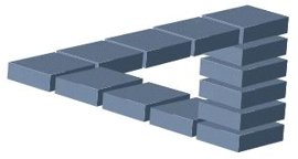 Todas estas figuras e ilustraciones, tienen en común que son imposibles, ya que sus ángulos y estructuras, no corresponden con la forma correcta.