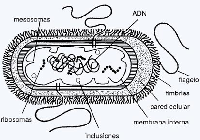Asociación de átomos, moléculas y macromoléculas para formar células bacterianas:
