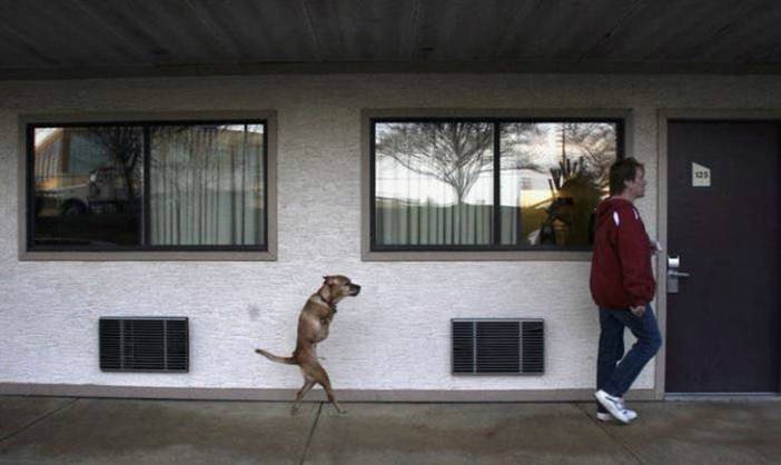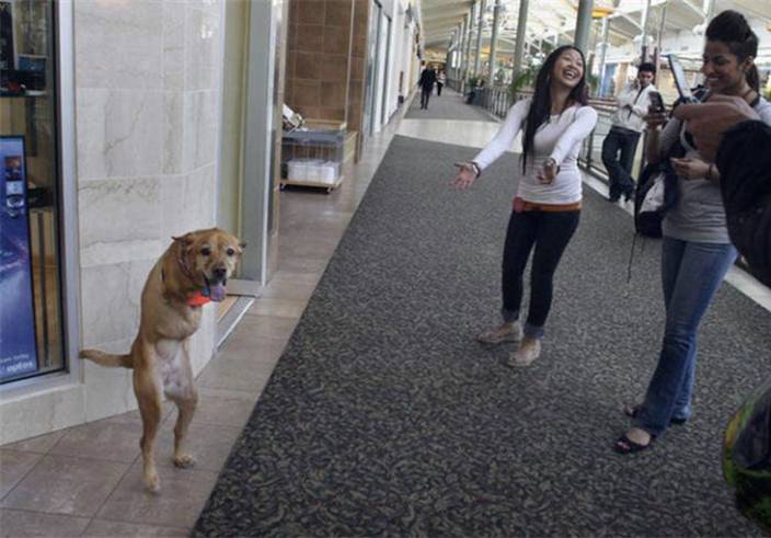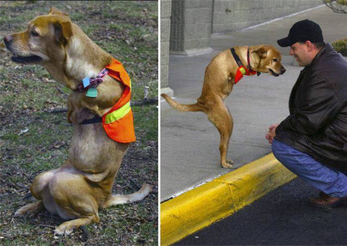 Impresionante lo de este animal, por cierto Andresín, son las patas delanteras las que le faltan, lo digo porque me parece que tuviste un lapsus en el título. Qué gracia la foto que va caminado detrás del señor y la que está olfateando a un pariente de Keko, pobrecito mío…