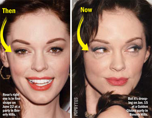 Rose McGowan tampoco salió muy afortunada en su operación, las bolsas de los ojos descolgadas le delatan.