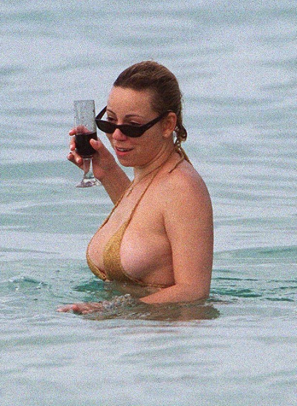 Y aquí, aunque en una pose muy finolis, la Mariah enseña cachete con cachete, pechito con pechito y ombligo con ombligo.