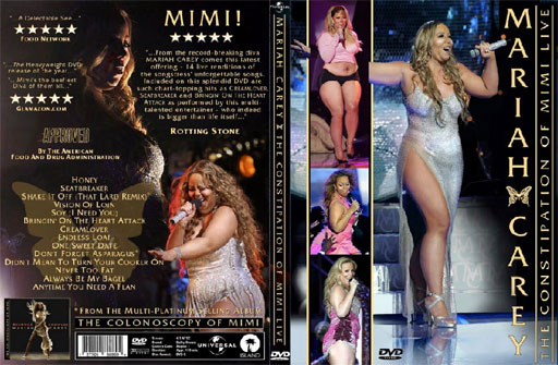 ¿Veis lo que pasa cuando sales tan fondona? Que luego te hacen estos fotomontajes, el dvd de «The constipation of Mimi Live».
