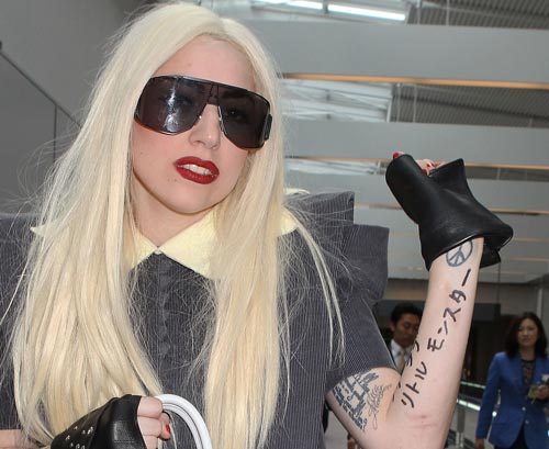Por cierto Gaga lleva escrito en el brazo «pequeño monstruo»
