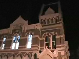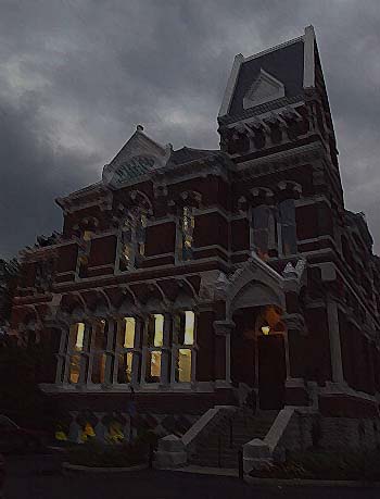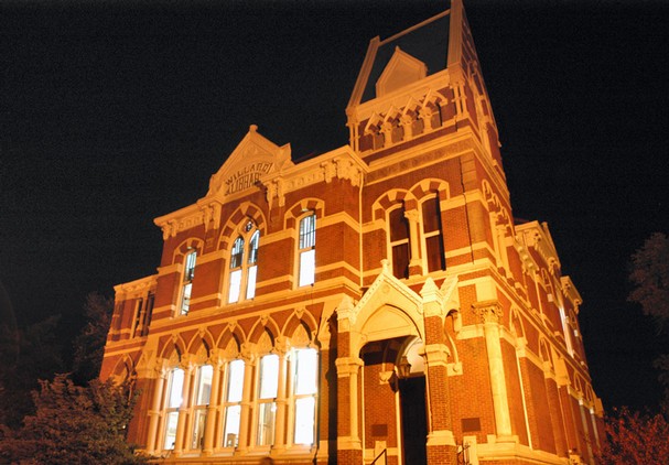 El tétrico exterior de la biblioteca.