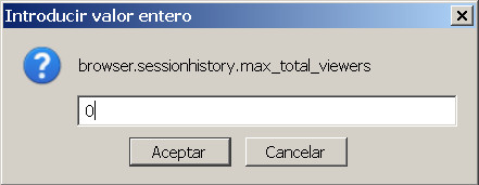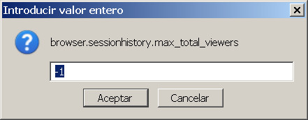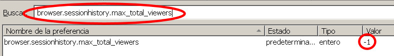Ahora en el buscador del editor de Firefox escribimos la instrucción browser.sessionhistory.max_total_viewers y nos fijaremos que el valor que nos da es -1.