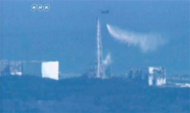 Un helicóptero militar rocía con agua los reactores de la central nuclear Fukushima I en este fotograma extraído de un vídeo.