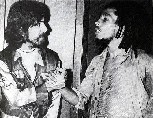 Bob Dylan, Mick Jagger, Bianca (su mujer) y Keith Richards