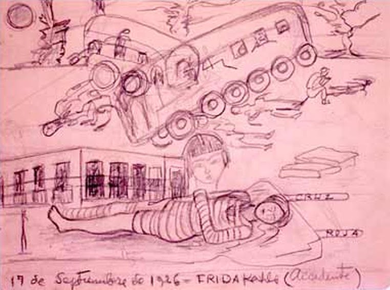 En una lluviosa mañana de septiembre, en 1925, estando Frida sentada en la parada del autobús, junto con Alejandro, la tragedia quiso perseguir su sombra por segunda vez. Las ruedas se detuvieron delante de los pasajeros. La cuesta pareció vacía. La curva resultaba extrañamente sencilla. Con un furia inconmensurable, el tranvía se empotró contra el autobús, y la suerte estuvo echada. Convaleciente y herido, Alejandro reptó por entre los cuerpos destrozados buscando a Frida.