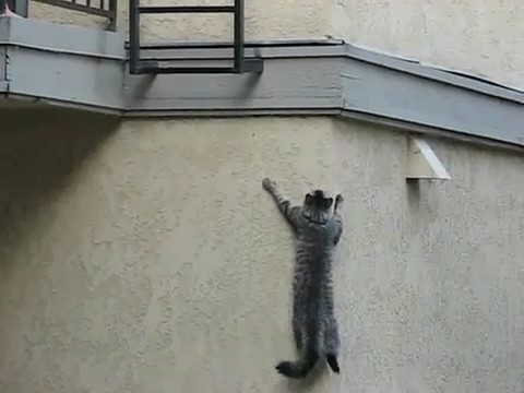 Lo de que los gatos son muy ágiles es de dominio público, pero ver cómo trepa por una pared para subir a casa es totalmente impresionante.