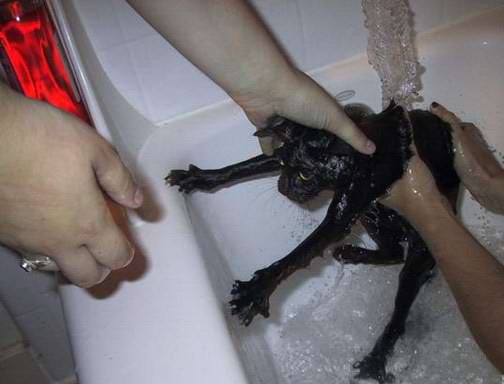 Mi amigo Maesin me ha mandado un graciosisímo correo con unas fotografías de gatos que son mortales. Siempre me han parecido muy divertidas las actitudes y maullidos de los gatos cuando se les moja en la ducha, son un poco cuentistas estos mininos, jeje.