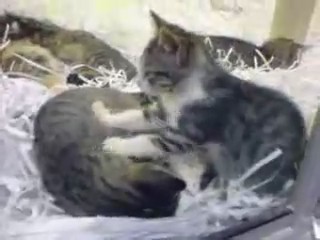 Este gato se dedica a masajear a sus compañeros de la tienda de animales, parece un profesional jaja.