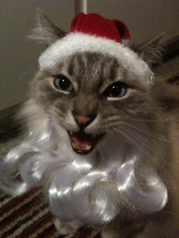 En esta colección para las fiestas navideñas, varios gatos nos mostrarán lo más exclusivo en moda para pasar la Navidad de manera elegante. Lo que más se lleva es vestir de Papá Noel o bien de reno. Pobrecillos, la verdad es que no parecen en general muy contentos con estos modelitos que les hacen ponerse.