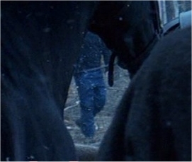 Tras la batalla de Germania, podemos ver a Máximo andando por el campamento y acercarse a un caballo para acariciarle la cabeza. Sí nos fijamos en el espacio que queda entre su cuerpo y el del caballo, puede verse calaramente a un hombre andando hacia atrás, con unos tejanos, una camiseta y una especie de walkie-talkie colgado en la cintura. Levi’s ya exportaba a los romanos por aquella época.