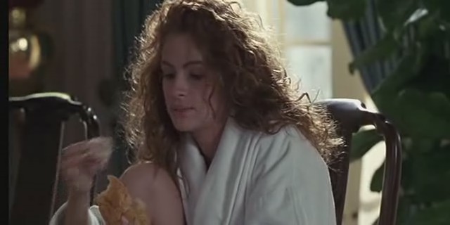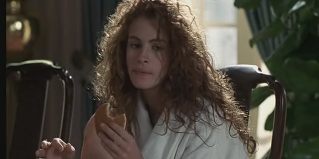 Aquí la Roberts sigue jamándose el cruasán, que ya se ve bastante “destrozado”.