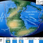Hace doscientos millones de años, toda la Tierra emergida de nuestro planeta estaba reunida en una sola masa que se llama Pangea (”toda la tierra”). Luego, esa masa única se partió en dos masas más pequeñas, Gondwana y Laurasia.