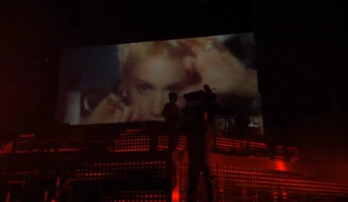 Después de una intro del videowall mostrando a Gwen en una playa en plan años 50 y con su pelotita pasándoselo bien, esta emerge al escenario con el mismo traje de baño del vídeo y canta una de mis canciones favoritas de ella; ¡guau, estoy de suerte! Es una delicia ver cantar a Gwen con un fondo marino y playero la canción «The real thing».