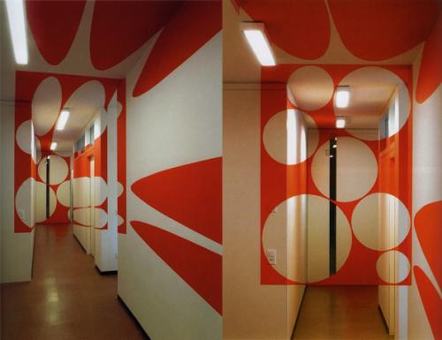 Estas habitaciones están pintadas de una forma muy curiosa, y es que sólo se aprecian bien las formas geométricas que han sido pintadas, desde un exclusivo punto de vista en toda la habitación.