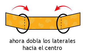 Doblamos los laterales de la tela hacia dentro a la altura de las cintas elásticas.