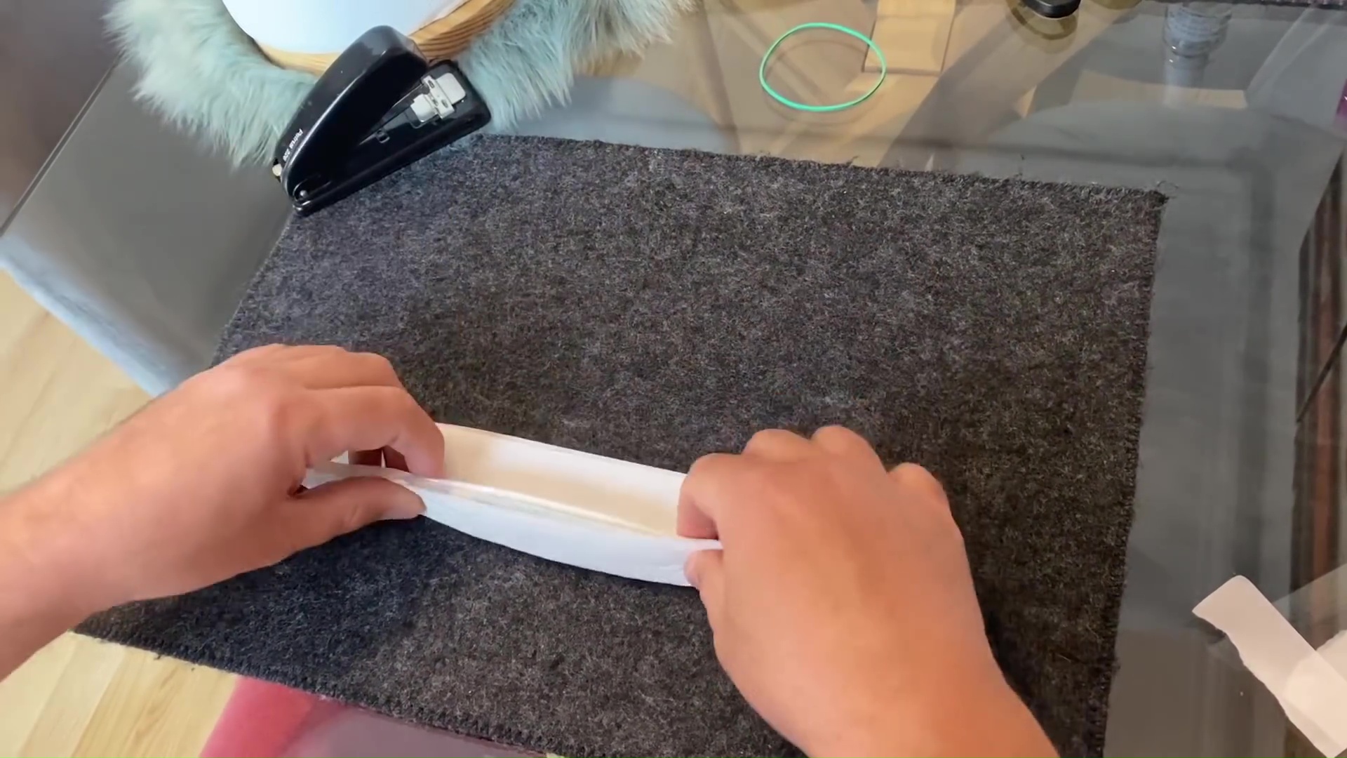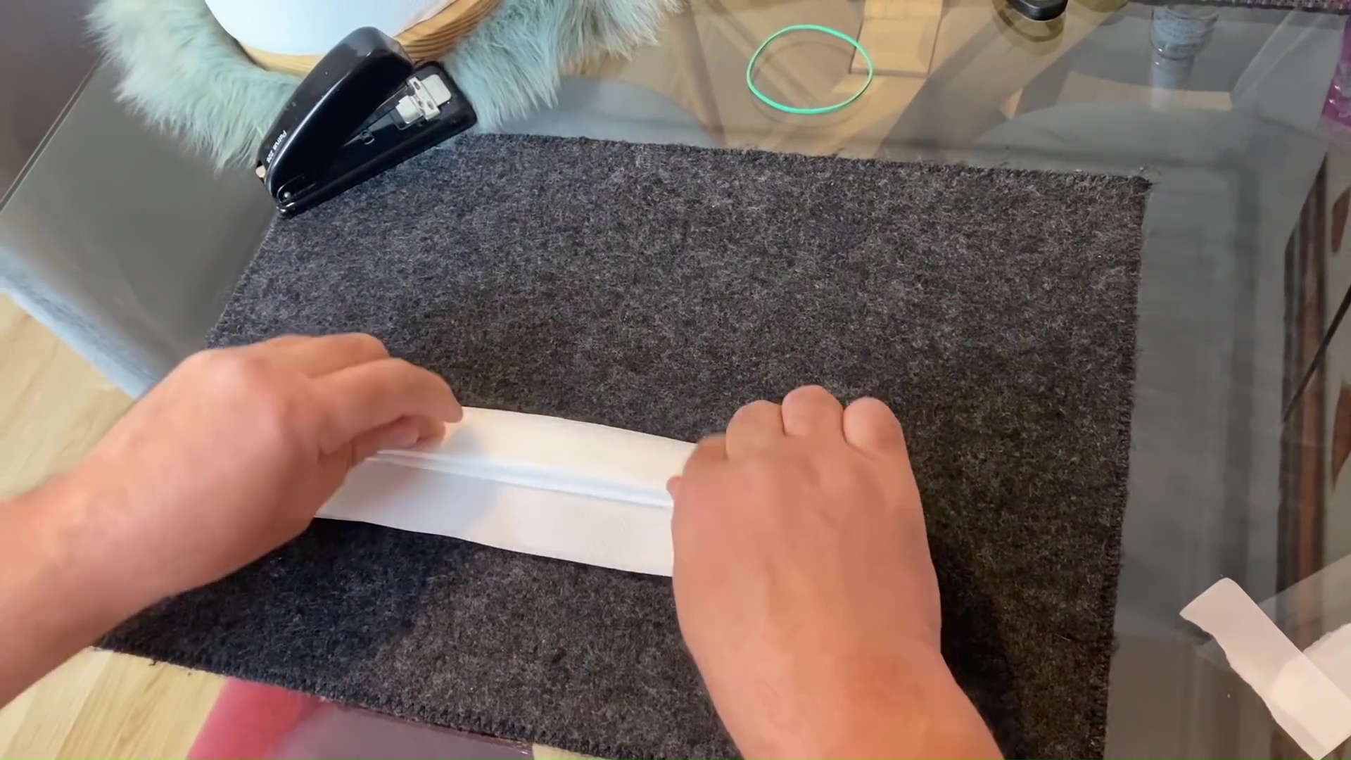 Ahora colocamos una goma o tira elástica circular en un lateral.