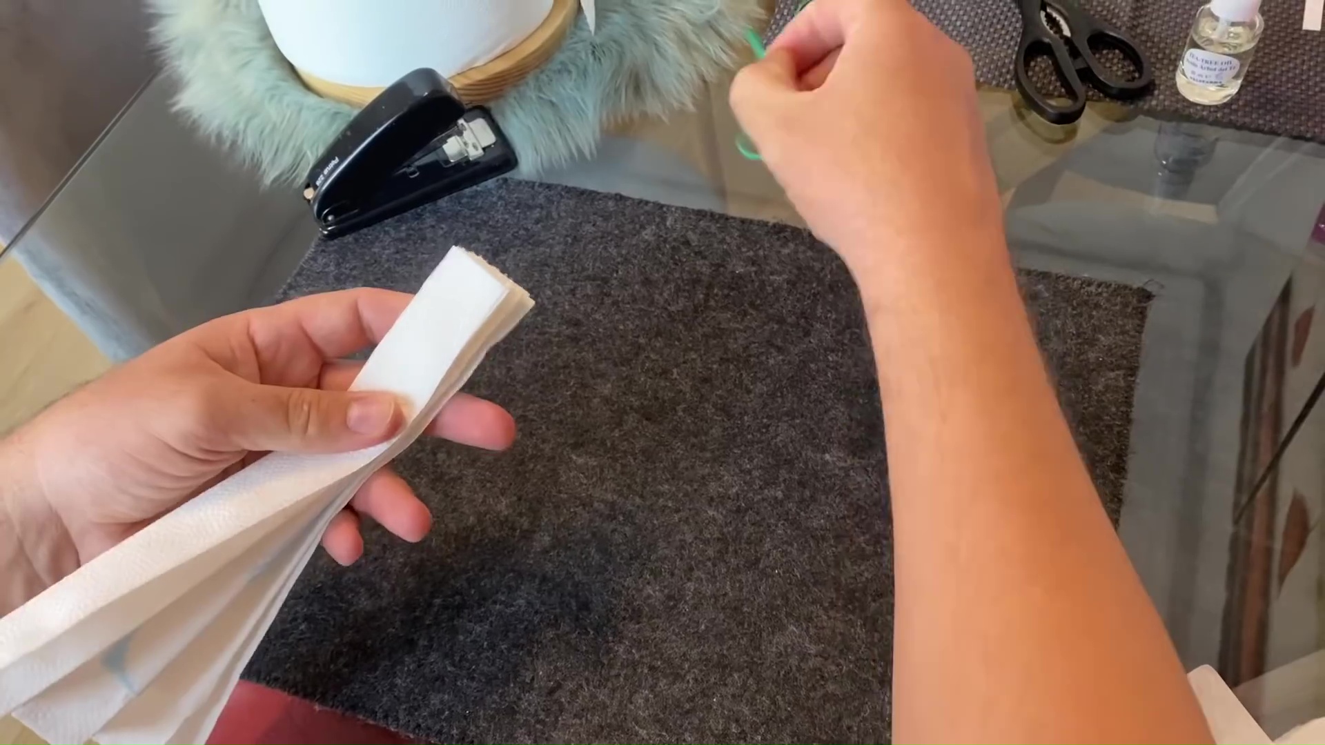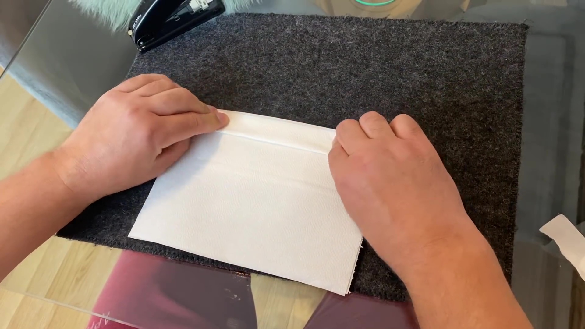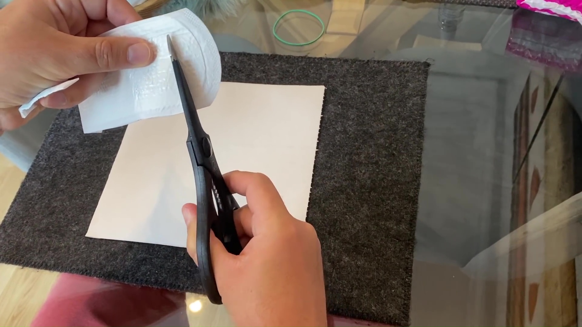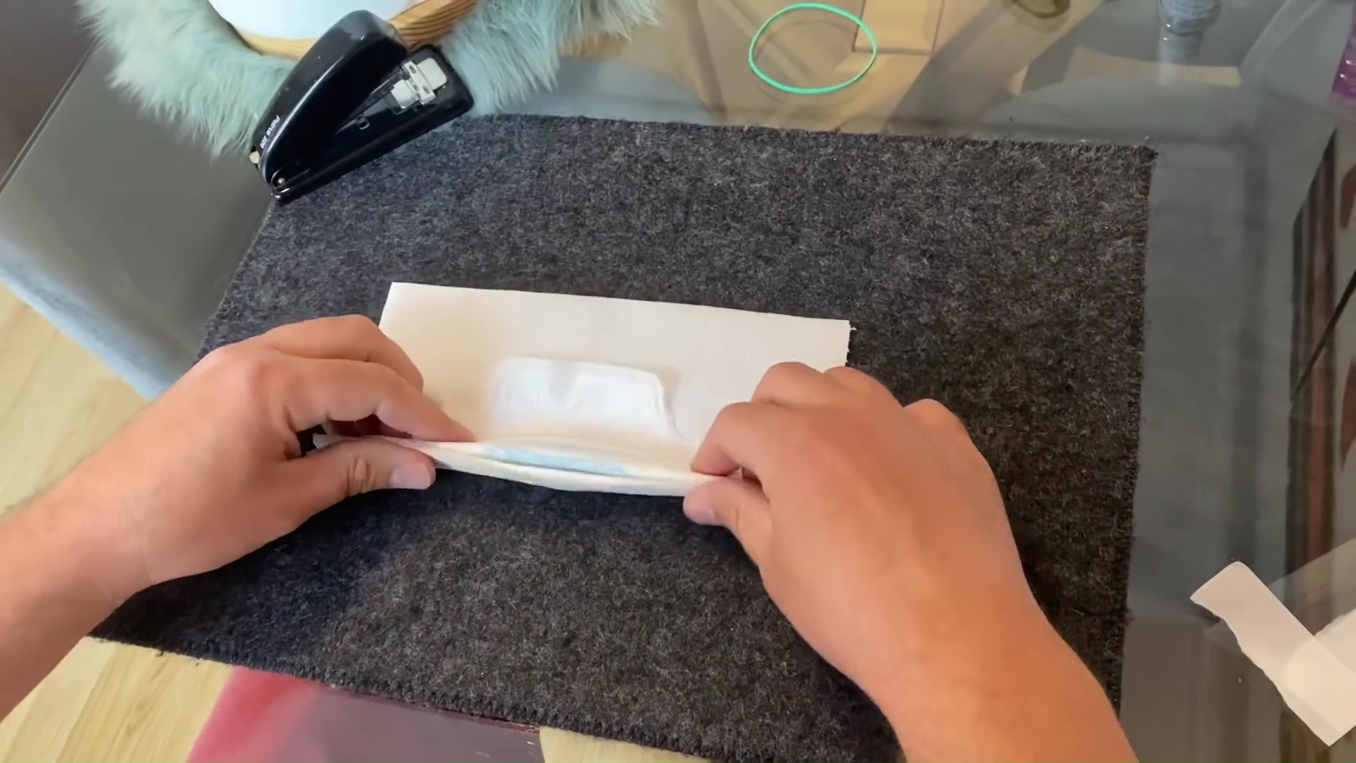 Colocamos la compresa encima de las hojas de papel de cocina y la centramos.