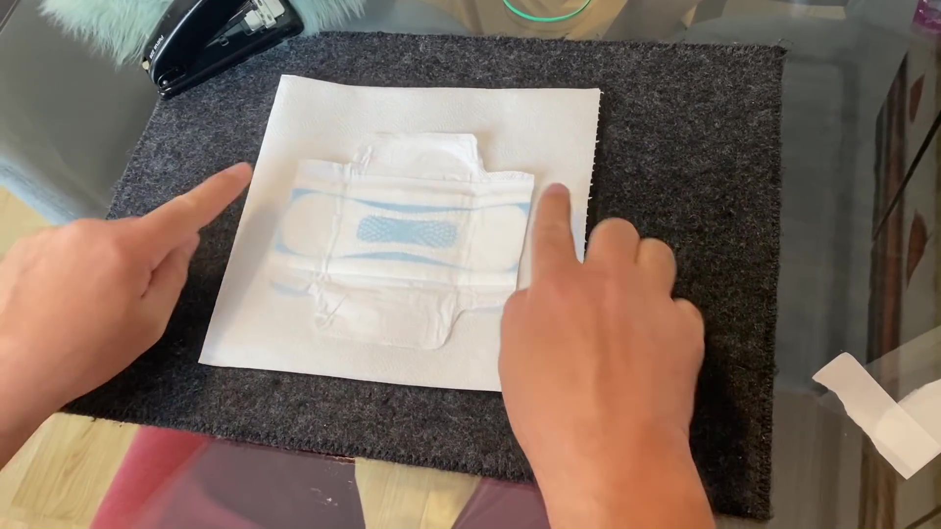 Si la compresa tiene alas, las desplegamos, con la parte adhesiva contra el papel de cocina.