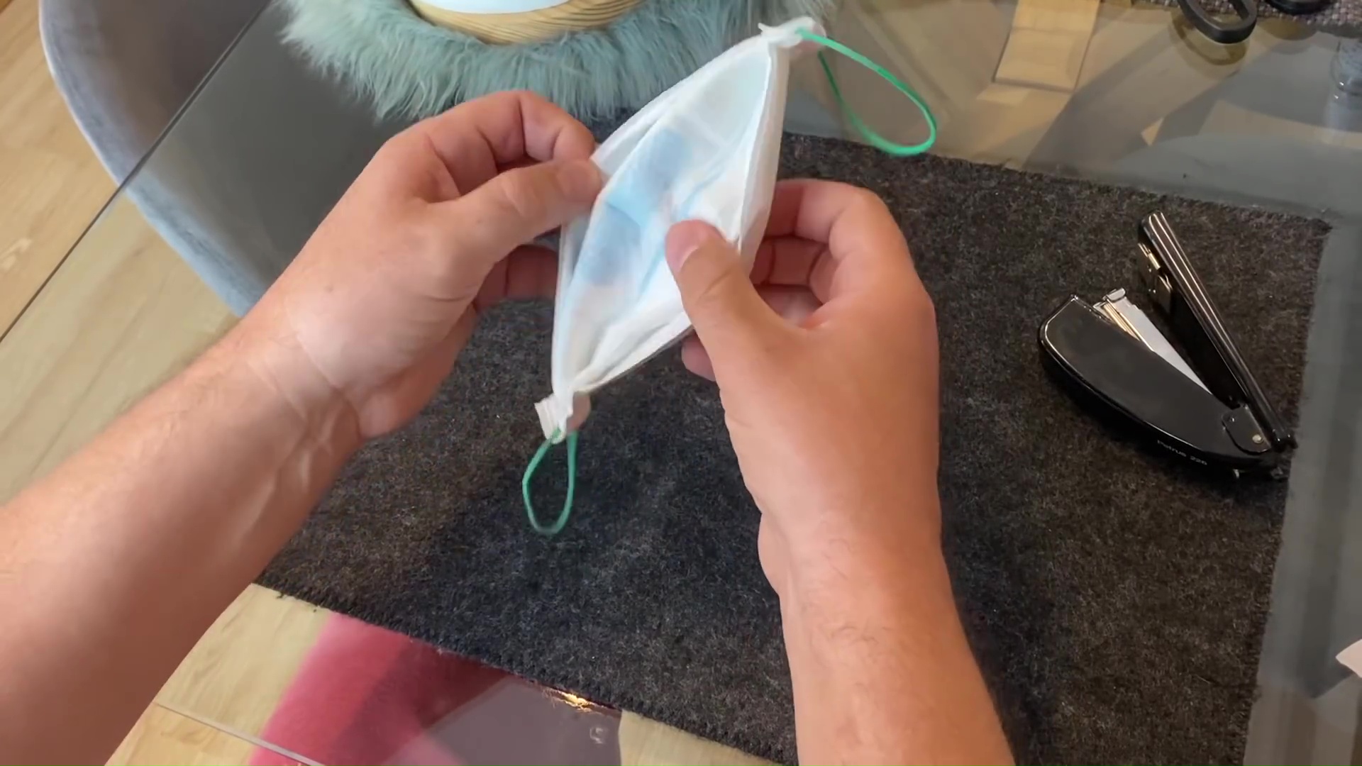 Ahora desplegamos o abrimos por el centro para darle forma de bozal a la mascarilla.