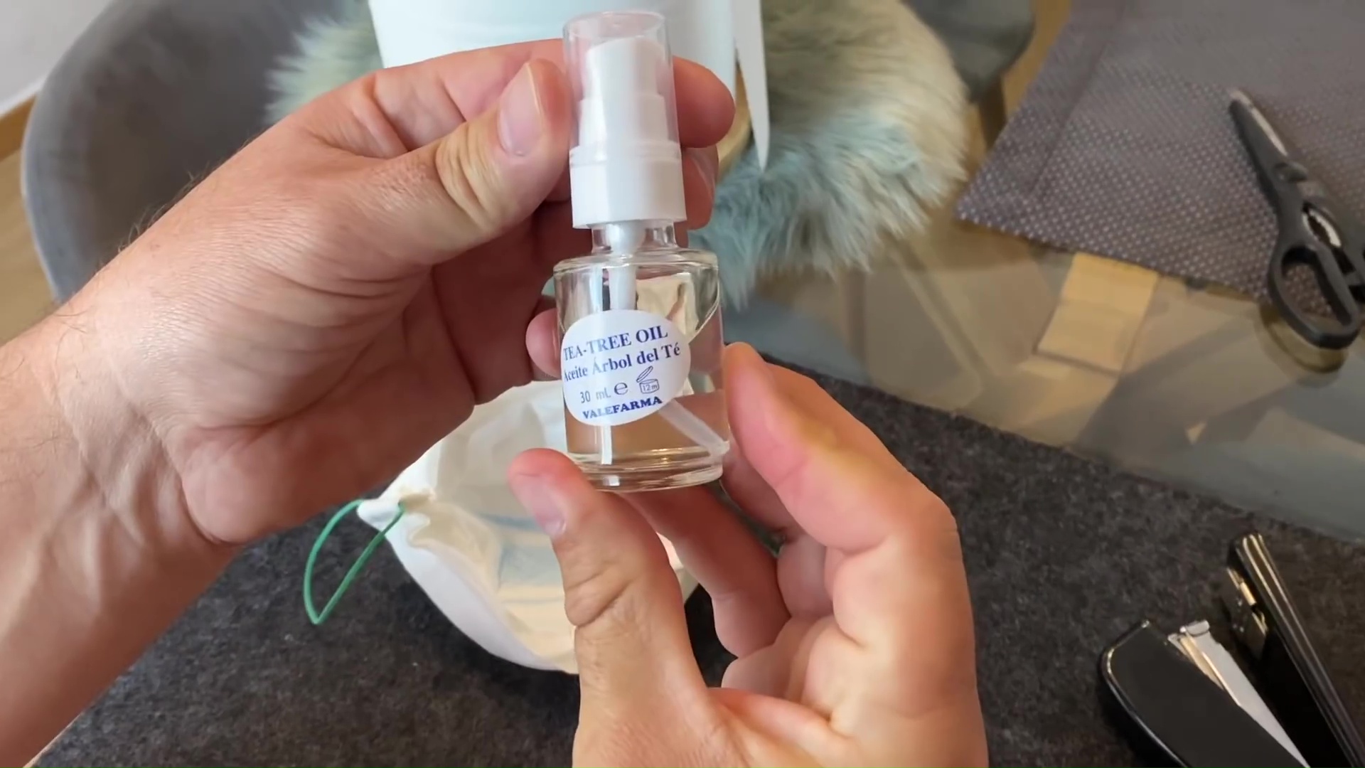 Este paso es opcional. Podemos aplicar un poco de aceite de árbol de té debido a sus propiedades antisépticas y antibacterianas contra hongos y virus. De todas formas si somos delicados con los olores, podemos omitir este paso, ya que el olor puede resultar cargante cuando llevemos la mascarilla durante mucho tiempo.