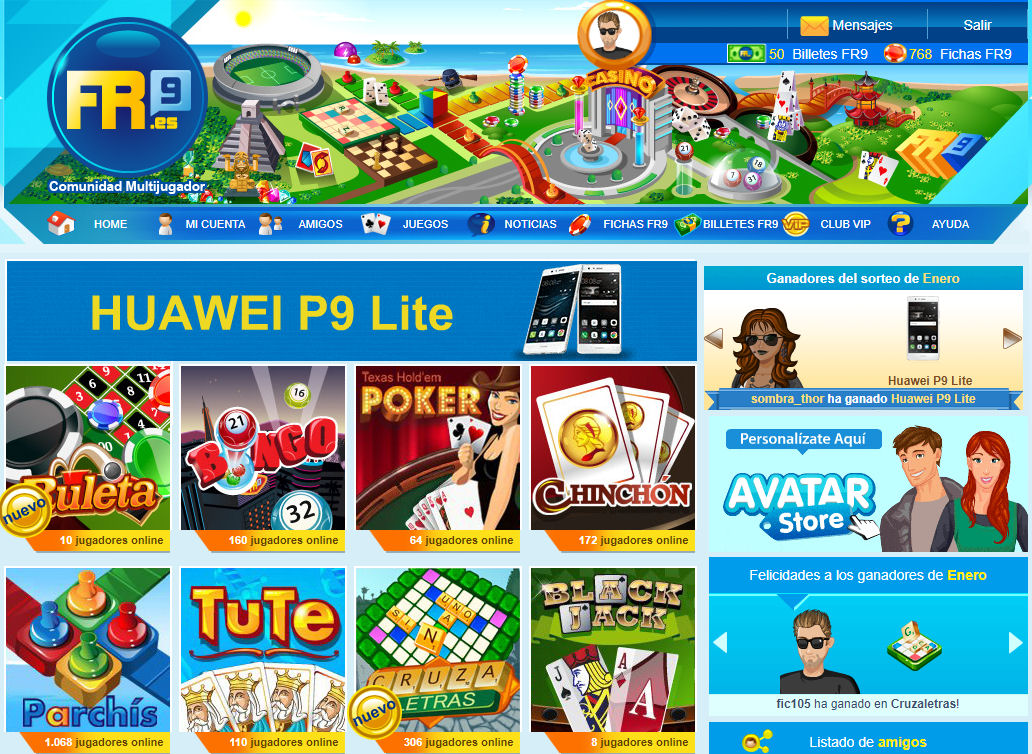 Posteriormente podemos adquirir más fichas FR9, que nos sirven de moneda virtual para jugar en este portal. Según ganemos estas fichas a otros usuarios de la comunidad, iremos mejorando nuestros puestos en las clasificaciones de cada juego en el que ganemos dichas fichas. Con ellas conseguiremos jugar a cualquier juego de la comunidad multijugador de FR9.es.