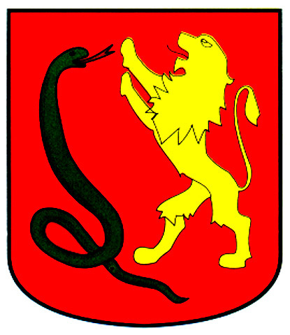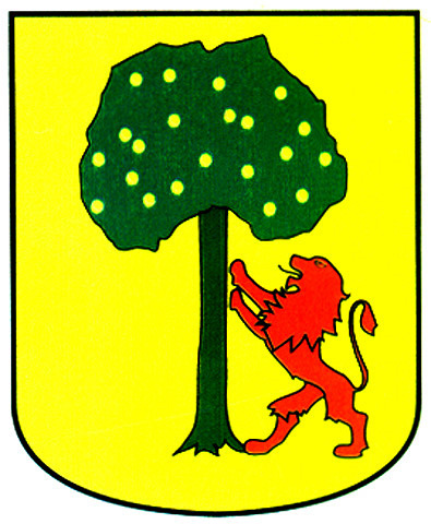 Armas: En campo de oro, un árbol de sinople y un león de gules empinado al tronco.