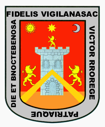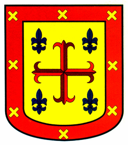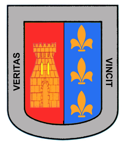 Armas: En campo de gules, un castillo de oro; partido de azur con tres flores de lis de oro. Bordura de plata, con el lema: «Veritas vincit».